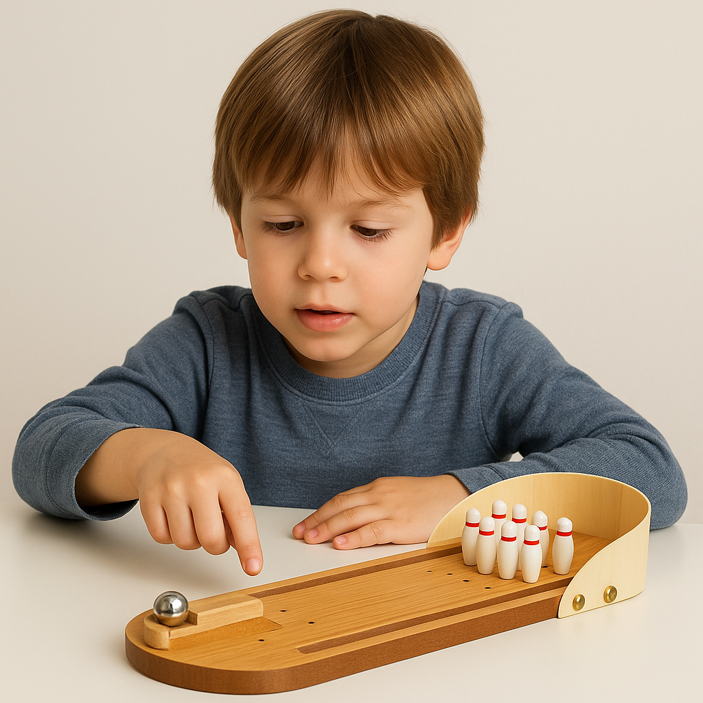 ✅ Complete Bowling Set – Comes with 10 miniature bowling pins and a metal ball.