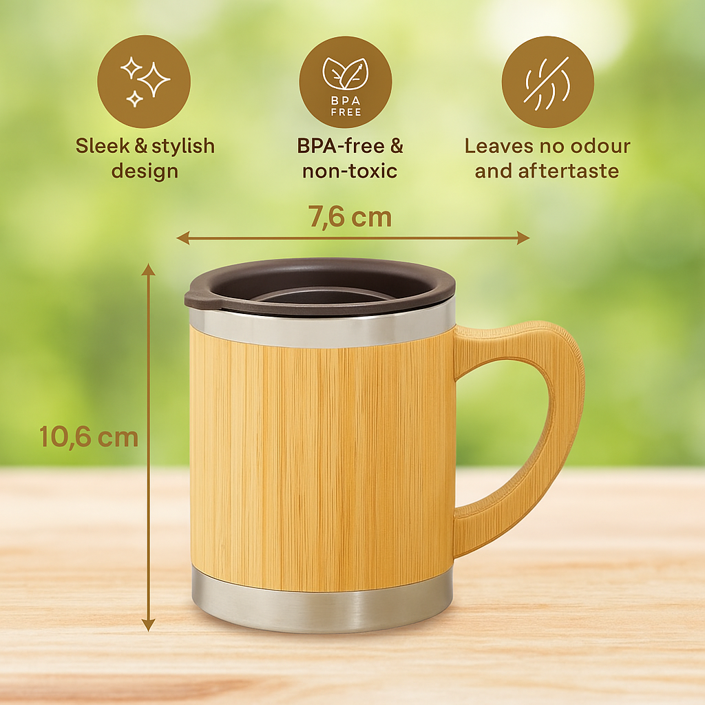 ♻️ Durable & Safe – Made from food-grade stainless steel inside with a sustainable bamboo outer layer.