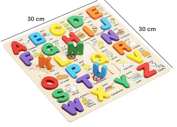 Introduce your child to the world of letters and numbers with this beautifully designed wooden puzzle set. Featuring vibrant A-Z alphabets with images and 1-20 numbers with counting objects, this toy is a fun and engaging way to boost early learning.